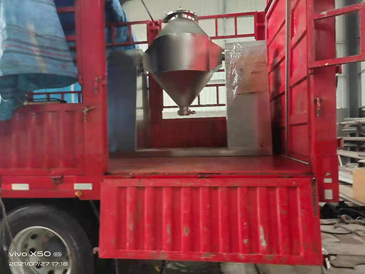 (三)雙錐筒進料口采用快開旋開閥,出料口采用大口徑90°旋閥,使用特別方便。