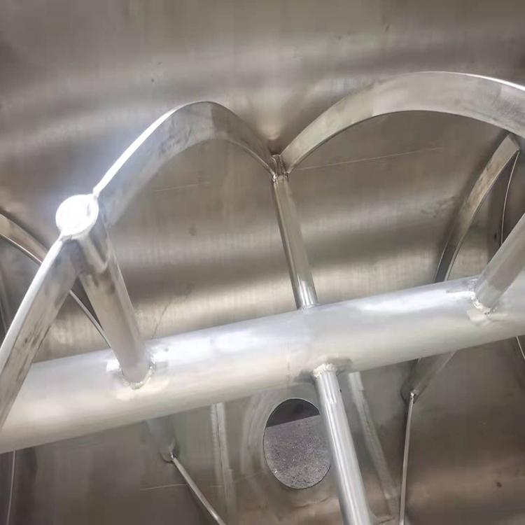 螺帶混合機特點:混合速度快,混合均勻度高,無死角,殘留小,螺旋帶上可以安裝刮板。 在不同物料的混合要求下(特殊物料必須每次混合后需清洗),采用不同螺旋帶結構。該機為臥式筒體,內外三層螺旋帶具有獨特的結構,運轉平穩(wěn)、質量可靠、噪音低,使用壽命長,安裝維修方便,并有多種攪拌器結構。